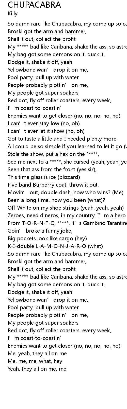 | [00:33.12] | My ***** bad like Caribana, shake the ass, so astronomic |