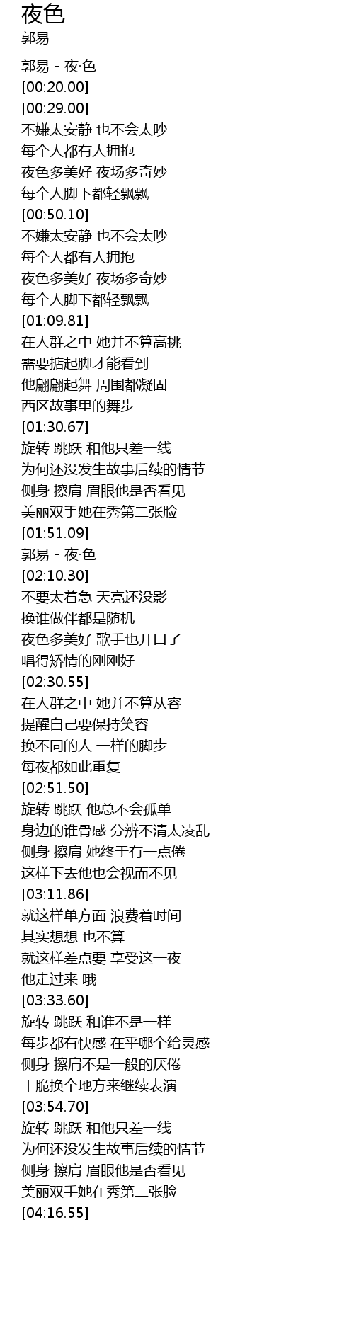 | [02:01.30] | 郭易 - 夜·色 |
