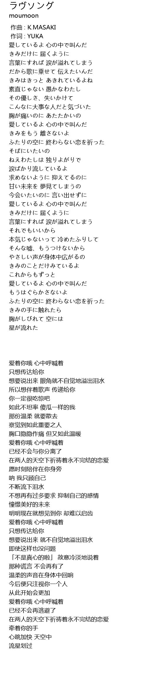 | [00:00.94] | 爱着你哦 心中呼喊着 |
