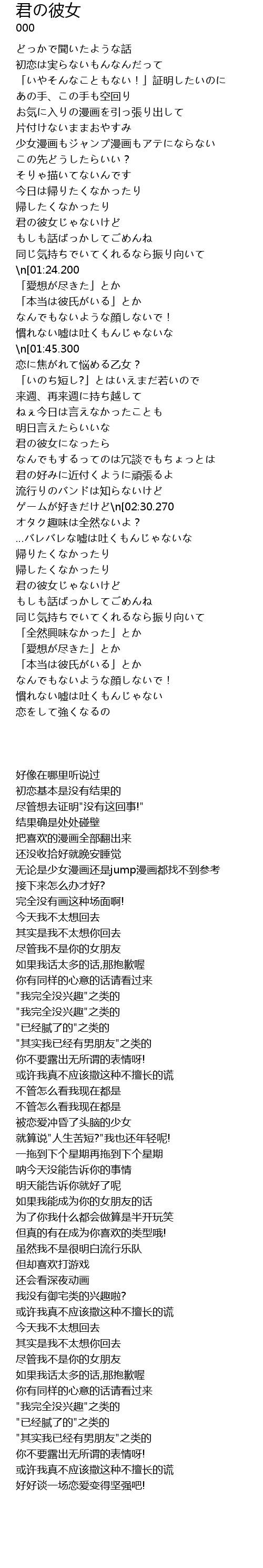 | [01:30.300] | "其实我已经有男朋友"之类的 |