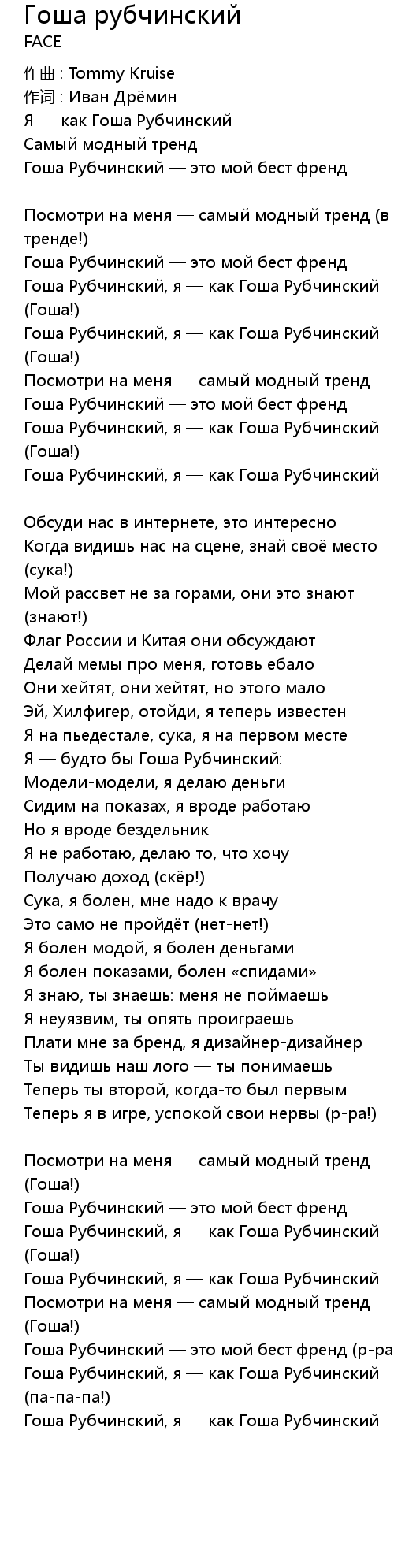 Гоша Рубчинский, я — как Гоша Рубчинский (па-па-па!) |