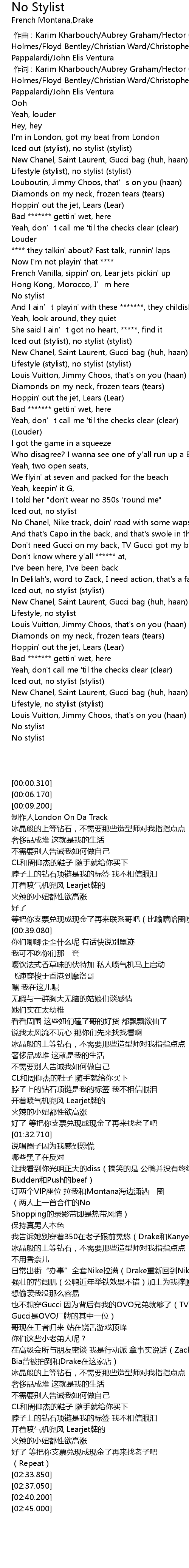 | [02:30.310] | Iced out, no stylist (stylist) |