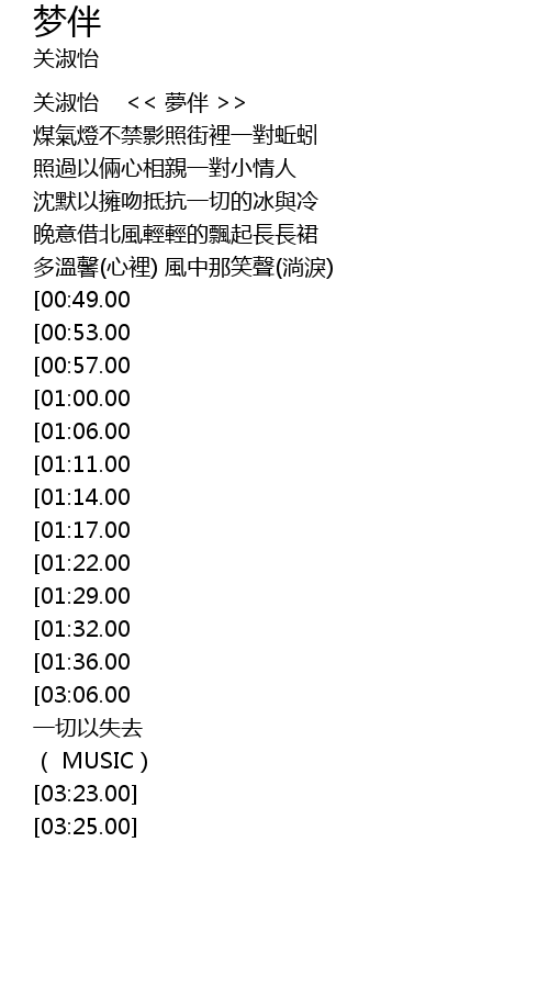 | [00:00.00] | 关淑怡 << 夢伴 >> |