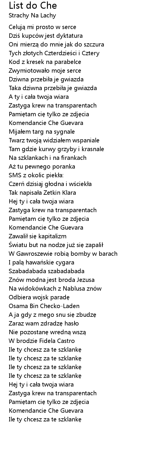 | 歌曲 | List do Che |