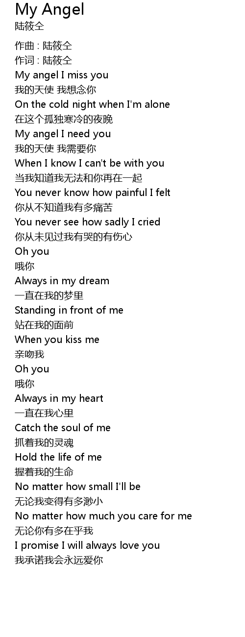 | wǒ de tiān shǐ wǒ xiǎng niàn nǐ | |