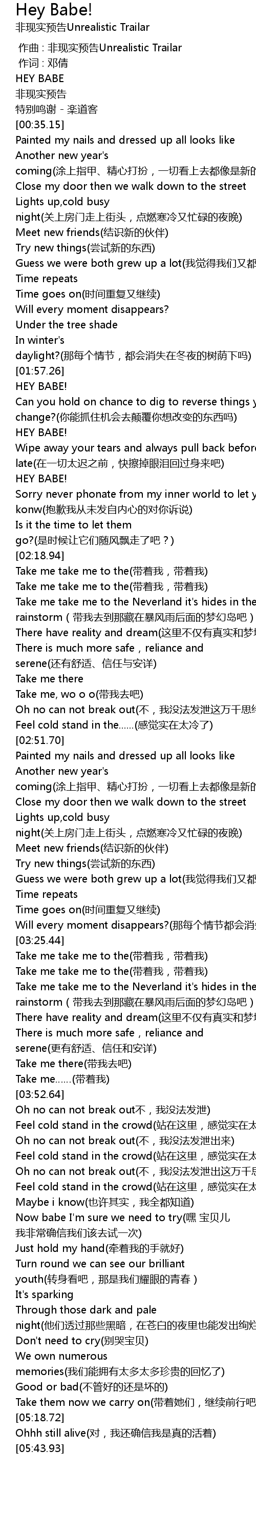 | [04:47.32] | Now babe I' m sure we need to try hēi bǎo bèi r wǒ fēi cháng què xìn wǒ men gāi qù shì yī cì |
