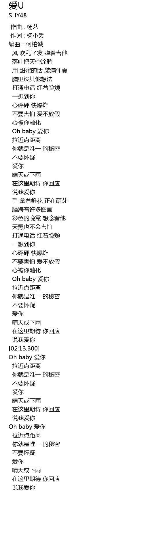 | [00:01.000] | zuò cí : yáng xiǎo diū |