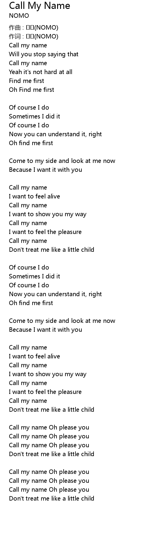 | Call my name Oh please you | |