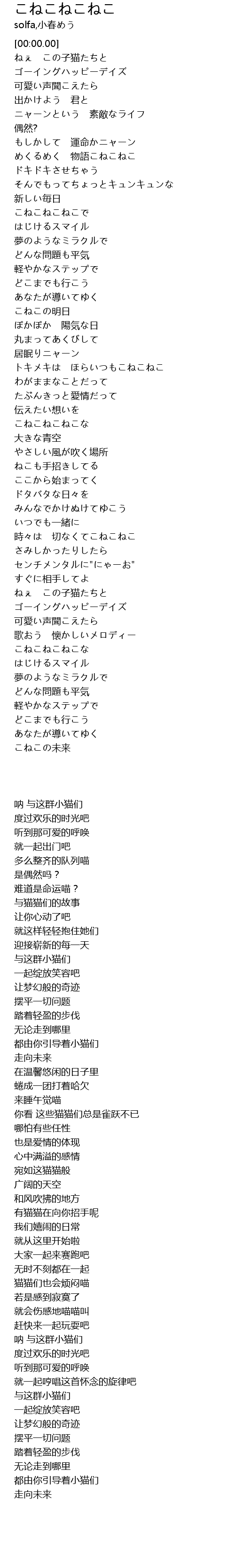 | [02:03.00] | こねこねこねこな |