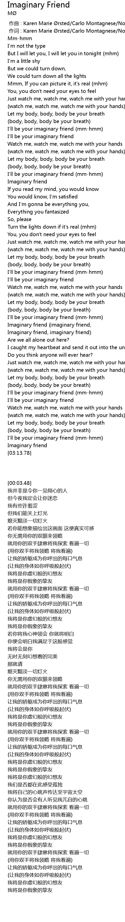 | [03:10.04] | Imaginary friend |