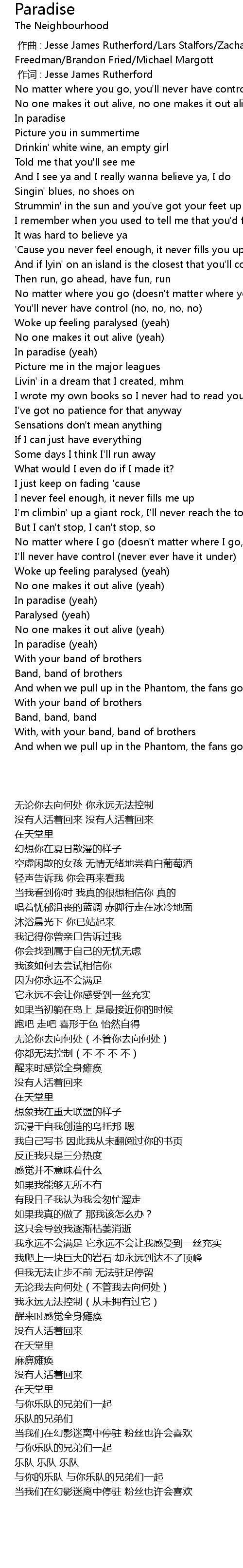 | [00:01.000] | 作词 : Jesse James Rutherford |