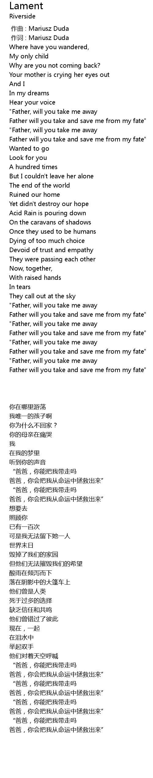 | [04:45.958] | Father will you take and save me from my fate" |