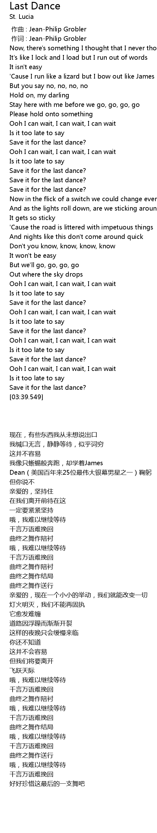 | [03:34.293] | 好好珍惜这最后的一支舞吧 |