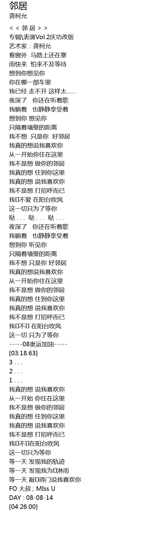 | [03:34.18] | 我不是想 做你的邻居 |