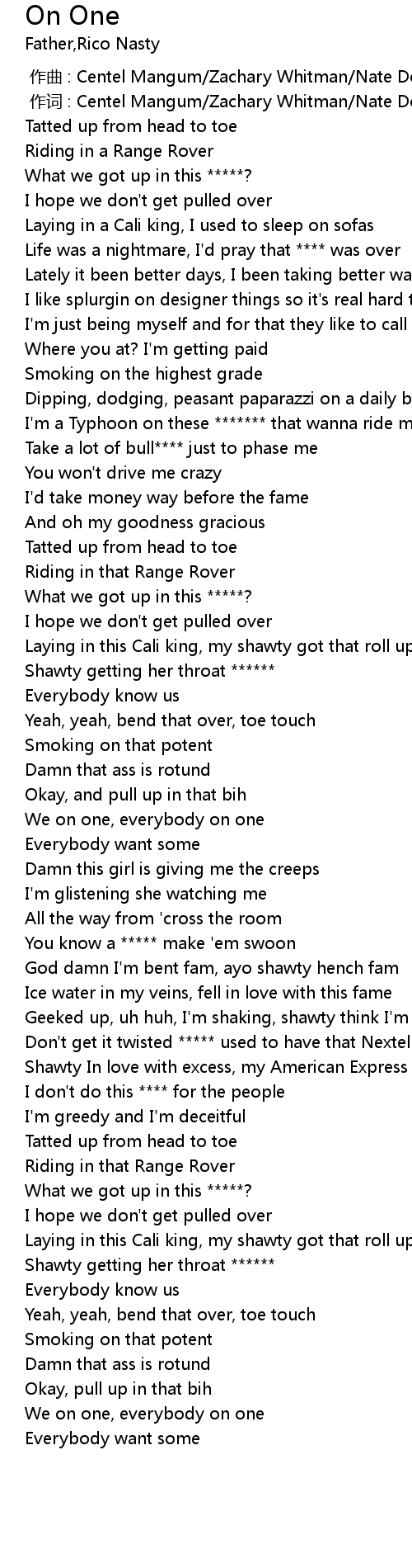 | [00:58.384] | Shawty getting her throat ****** |