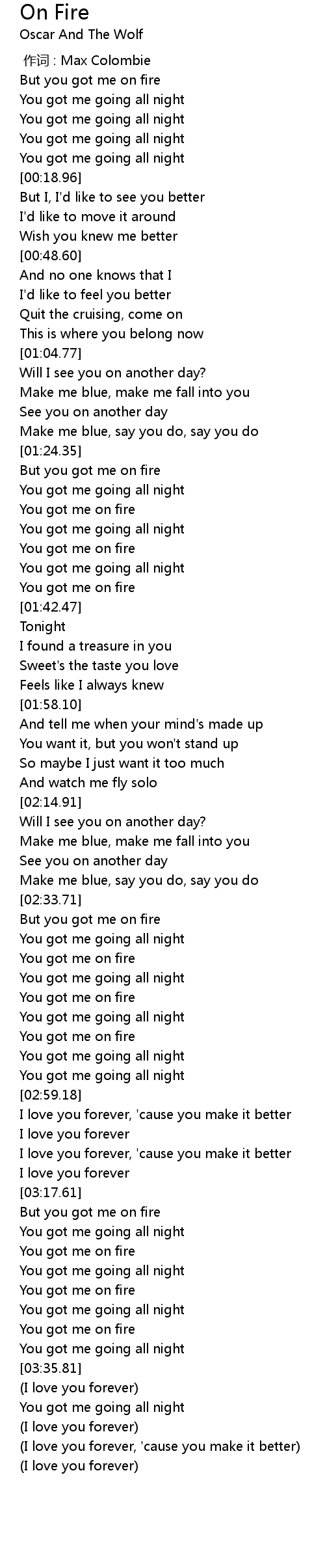 | [03:23.74] | You got me on fire |