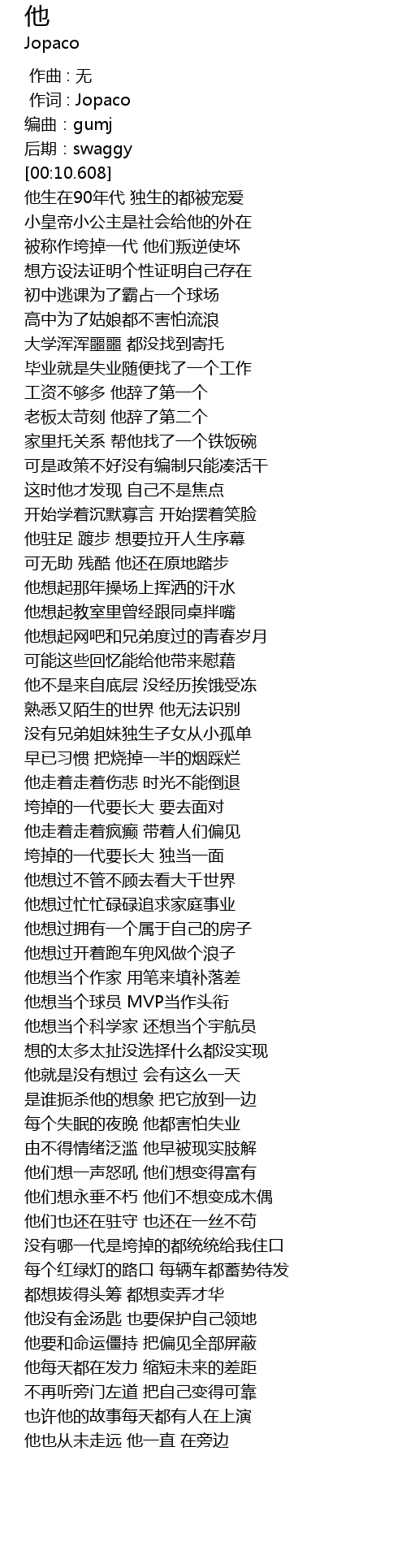 | [00:21.771] | 他生在90年代 独生的都被宠爱 |