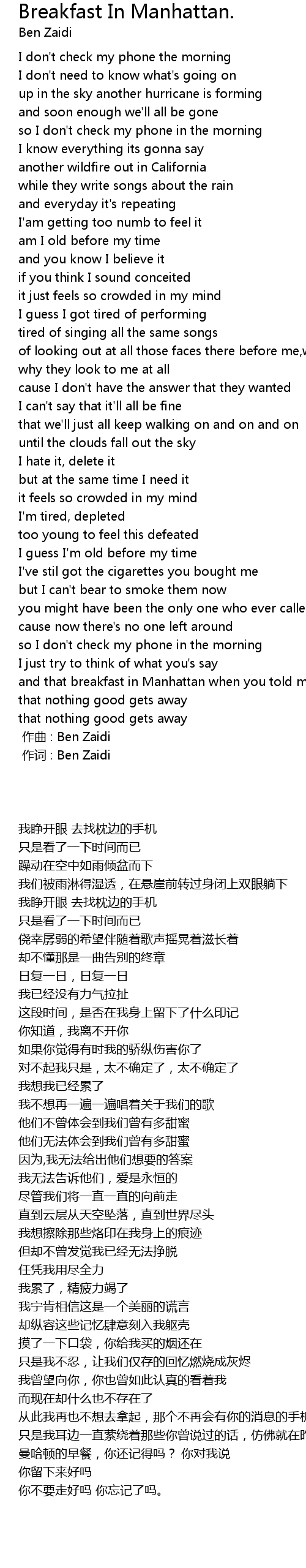 | [03:06] | 曼哈顿的早餐,你还记得吗? 你对我说 |