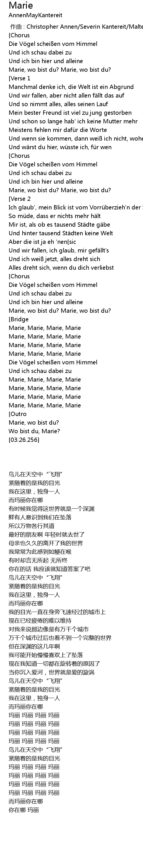 | [01:17.441] | Marie, wo bist du? Marie, wo bist du? |