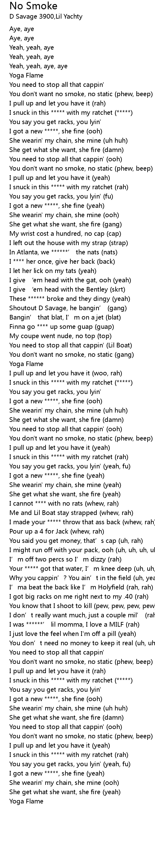 | [00:16.98] | You don't want no smoke, no static (phew, beep) |