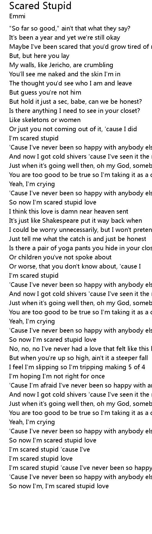 I'm scared stupid 'cause I've |