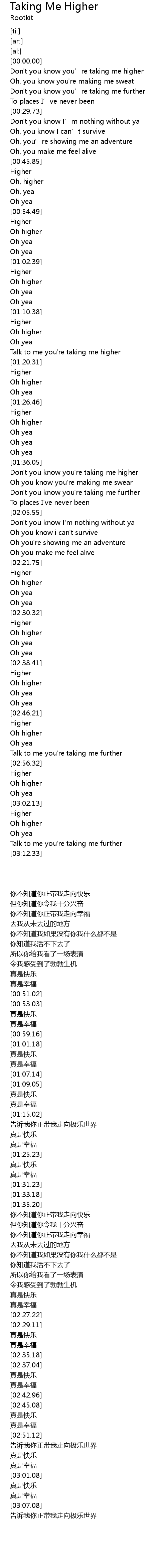 | [01:51.22] | Don' t you know you' re taking me higher |