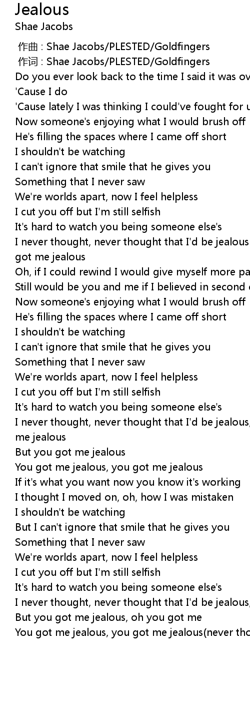 | 歌曲 | Jealous |