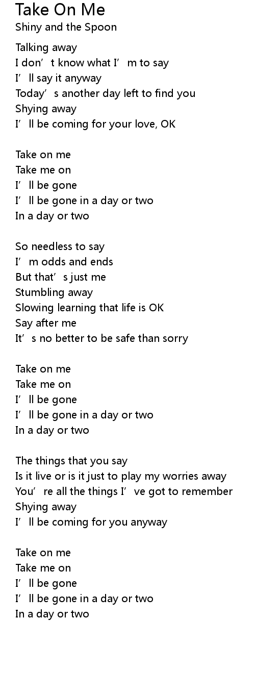 | Take on me | |