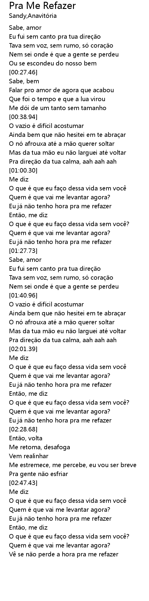 | [03:02.44] | Eu ja n o tenho hora pra me refazer |