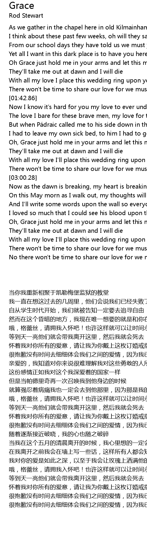| [03:54.43] | Oh, Grace just hold me in your arms and let this moment linger |