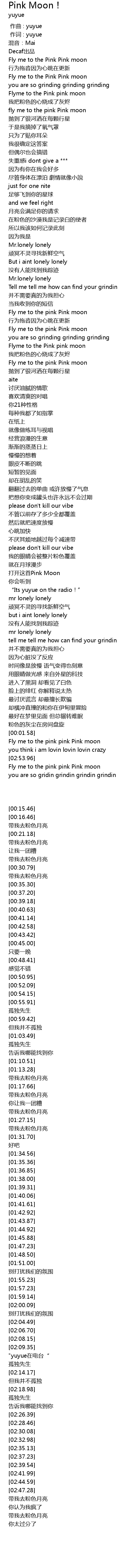 | [02:53.99] | Fly me to the pink pink Pink moon |