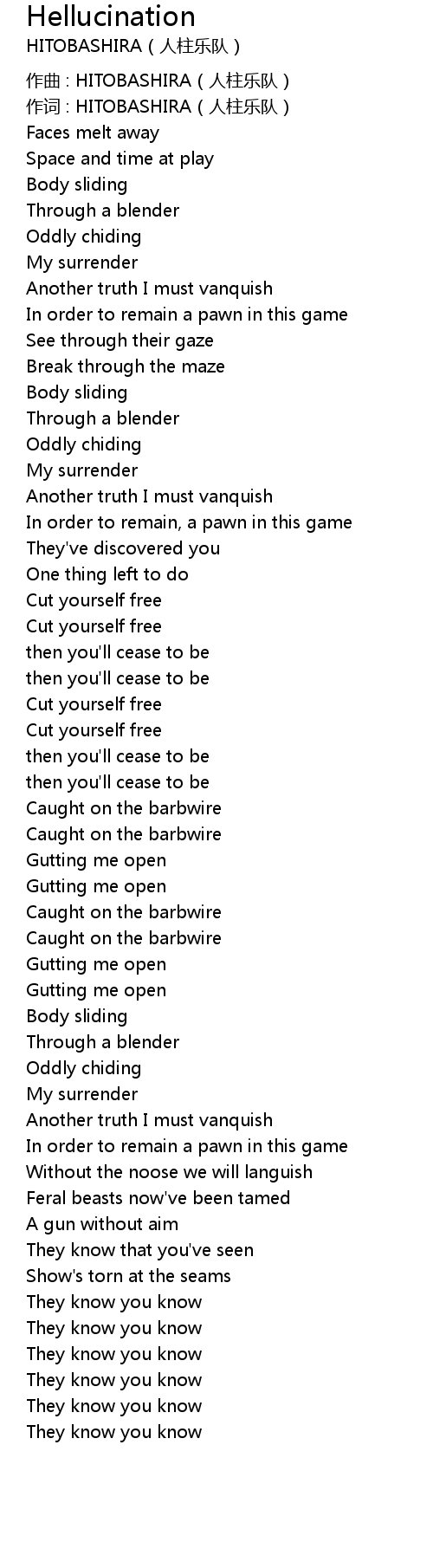| 作词 : HITOBASHIRA(人柱乐队) | |