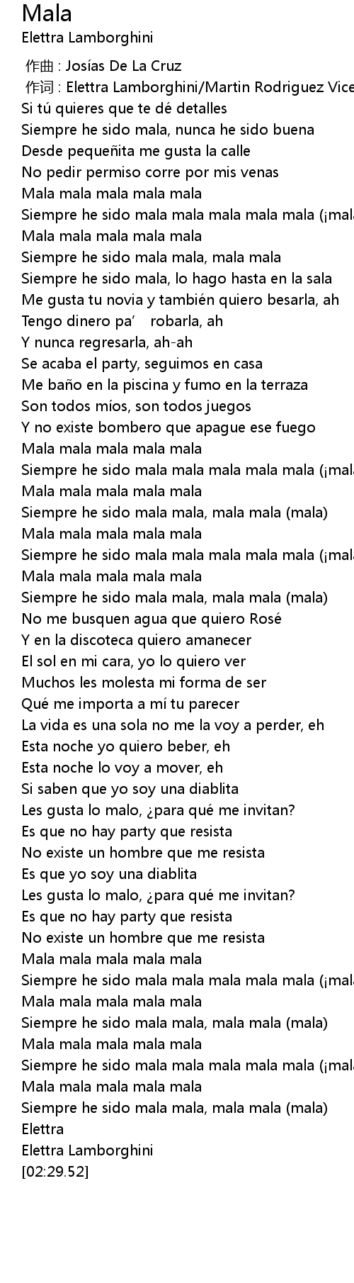 | [02:10.06] | Siempre he sido mala mala mala mala mala mala! |