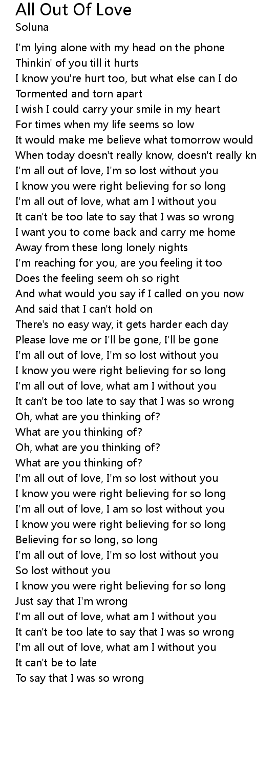 I'm all out of love, I am so lost without you |