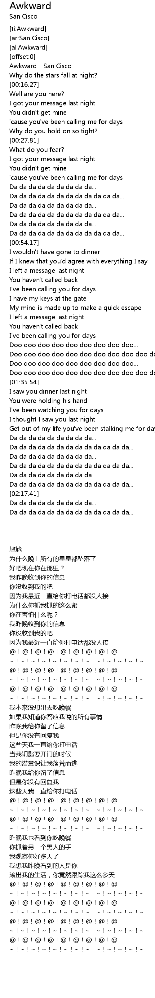 [ti:Awkward] |
