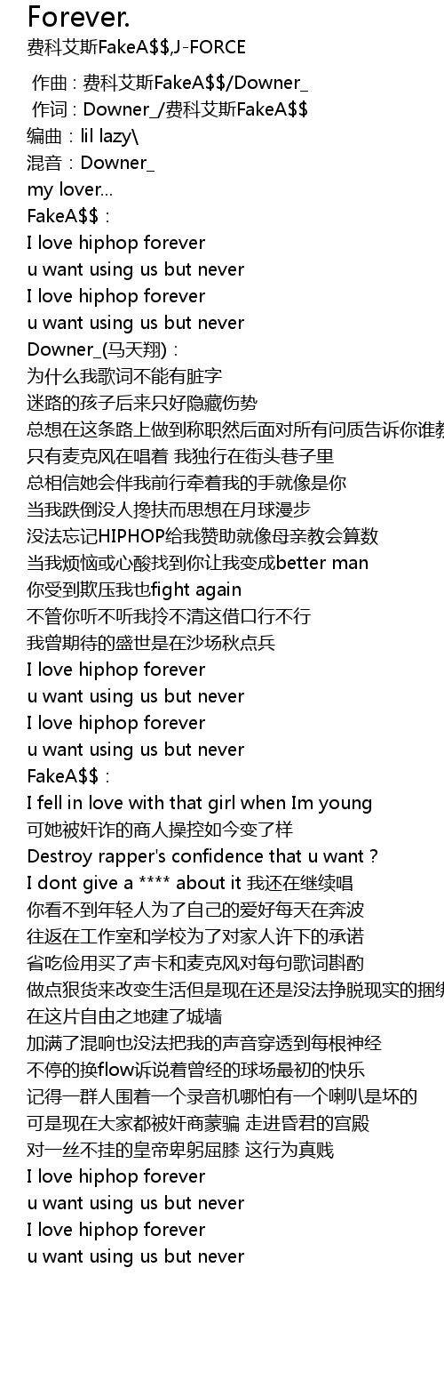 | [00:01.000] | 作词 : Downer_/费科艾斯FakeA$$ |