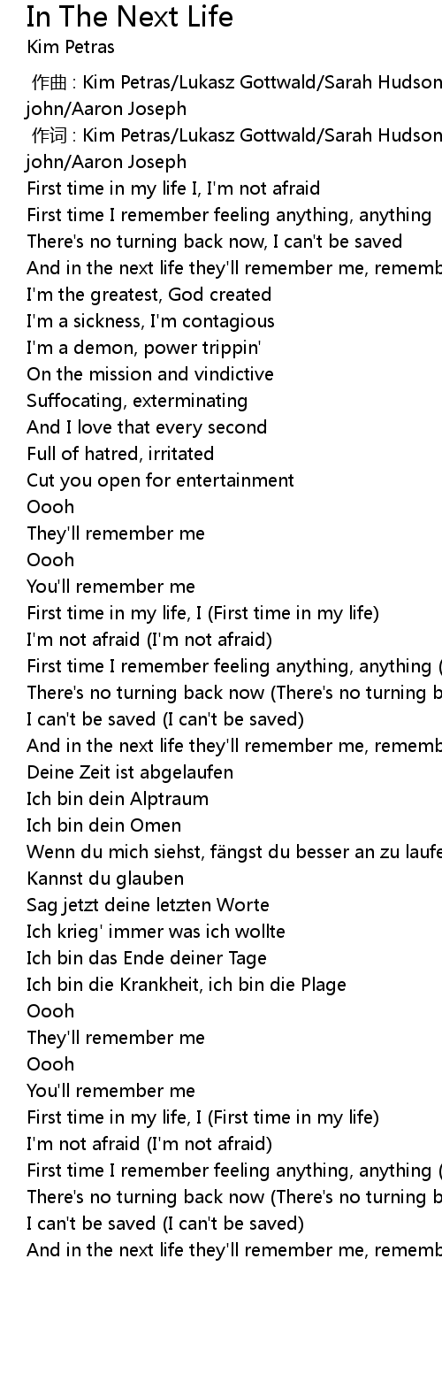 | 歌曲 | In The Next Life |