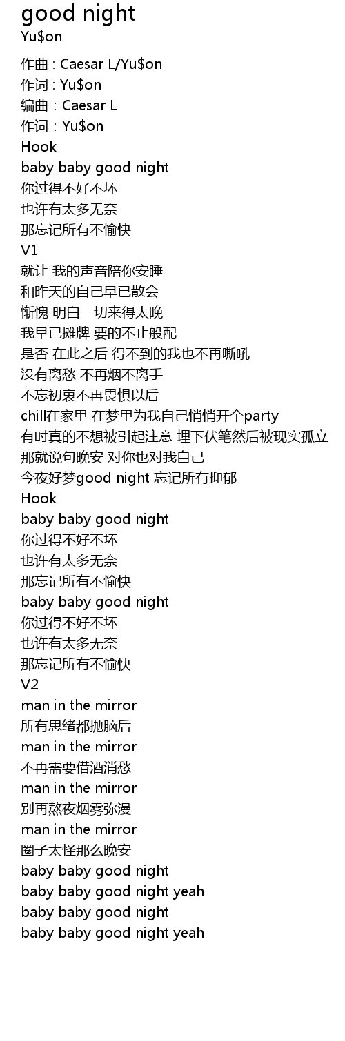 | baby baby good night yeah |