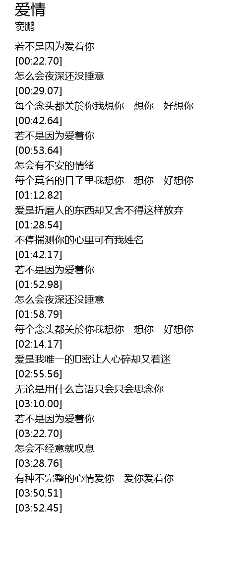 | [02:00.04] | 每个念头都关於你我想你 想你 好想你 |