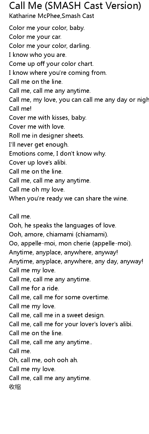 | 歌曲 | Call Me (SMASH Cast Version) |