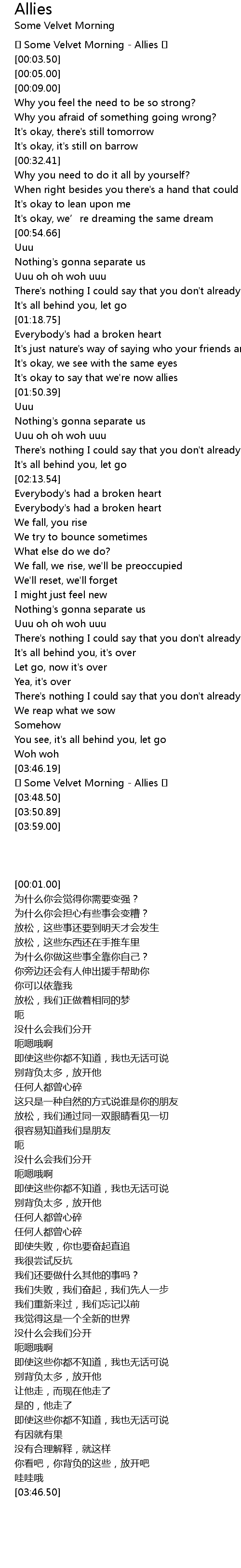 | [03:46.50] | ❤ Some Velvet Morning - Allies ❤ |