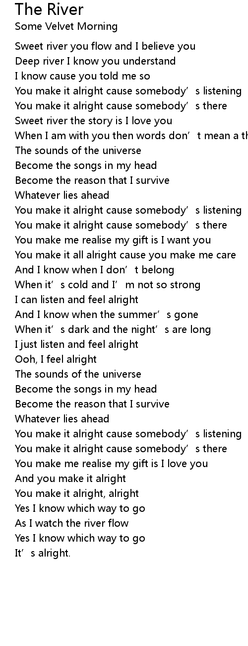 | Sweet river you flow and I believe you | |