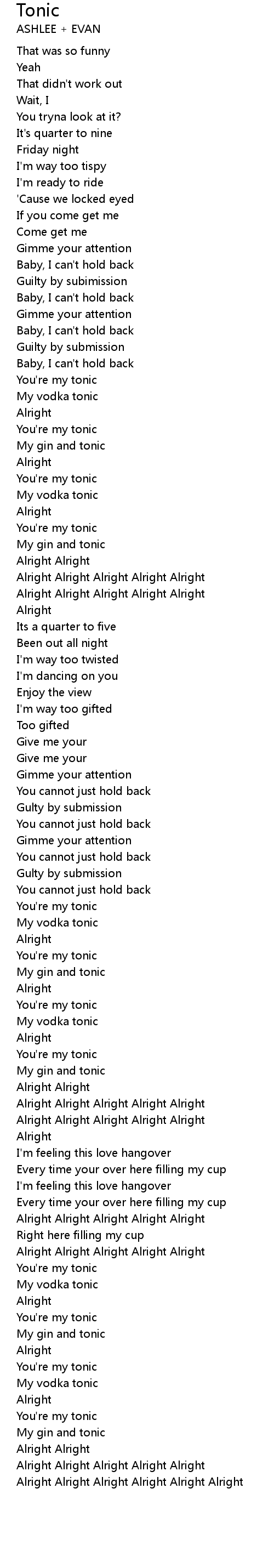 Tonic 歌词