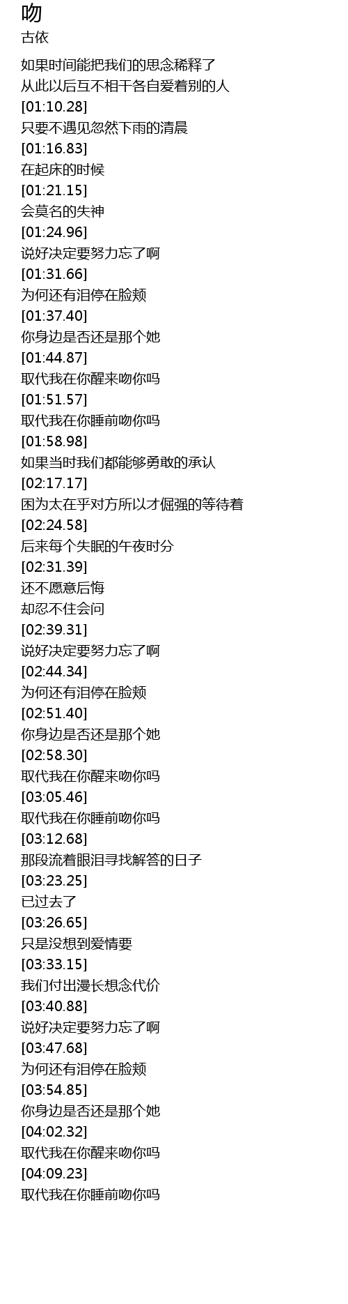 | [01:54.26] | 取代我在你睡前吻你吗 |