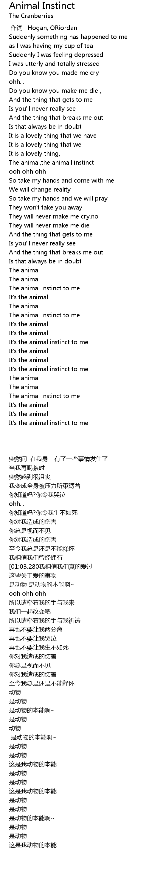 | [02:50.800] | It' s the animal instinct to me |
