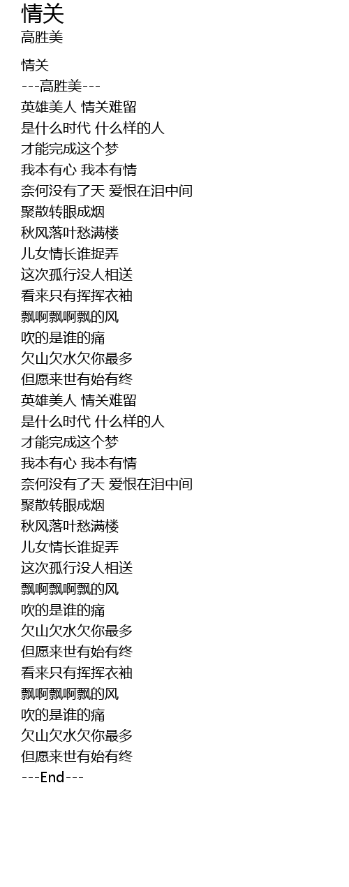 | [02:34.99] | 英雄美人 情关难留 |