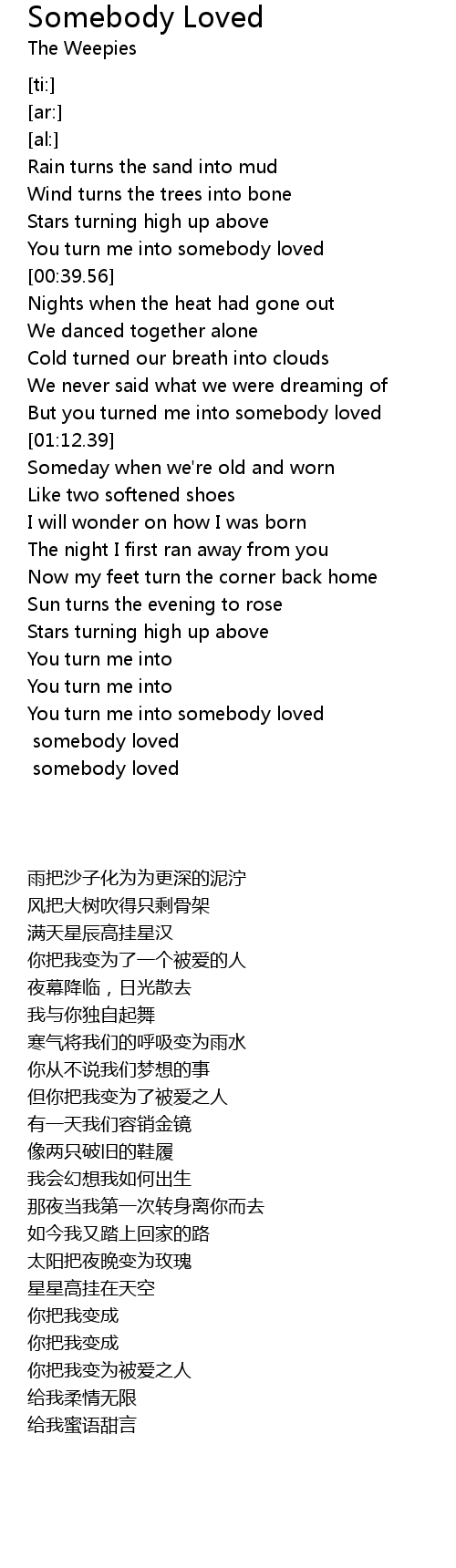 But you turned me into somebody loved |