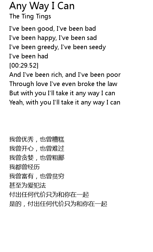 | [00:49.57] | Yeah, with you I'll take it any way I can |