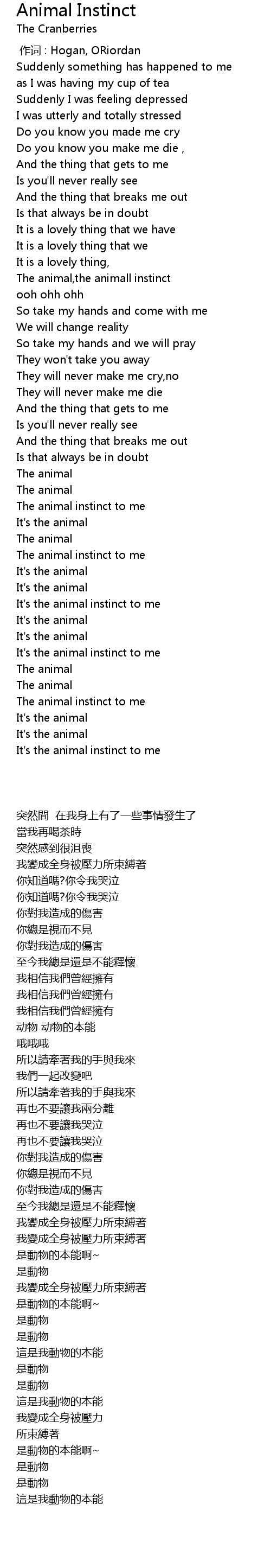 | [02:50.800] | It' s the animal instinct to me |