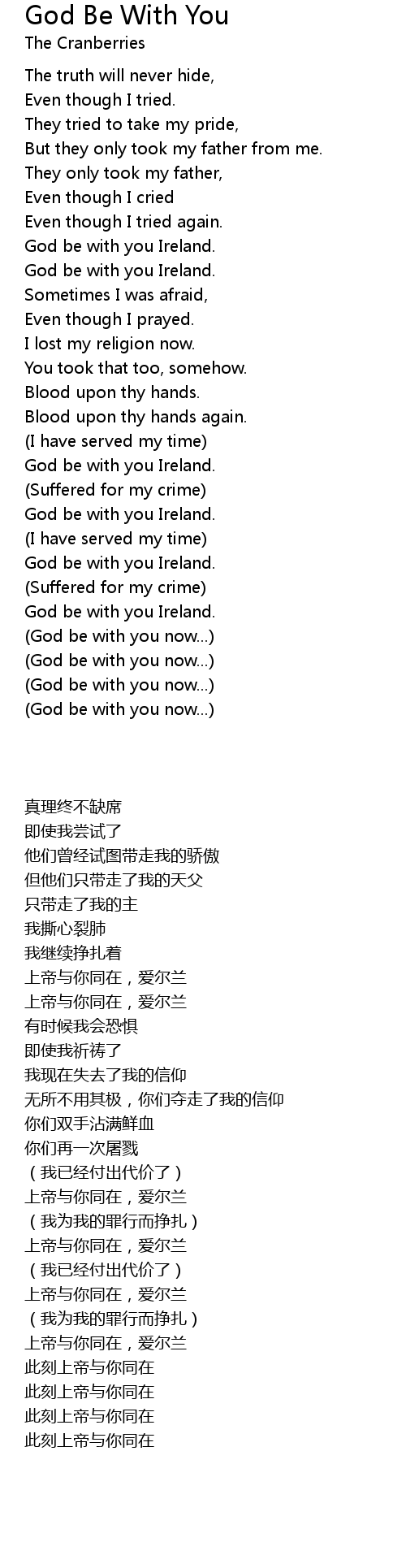 | [01:52.0] | 上帝与你同在,爱尔兰 |